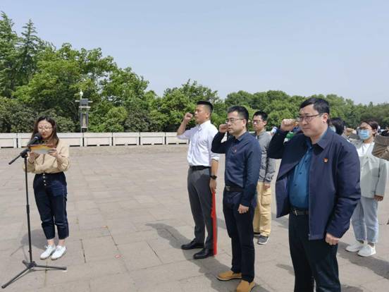 4月29日下午2点,青年们聚集雨花台烈士纪念碑前,敬献花篮,低头默哀,深切缅怀为民族解放、国家富强和人民幸福英勇献身的革命烈士,随后在青年党员代表陈沄渟的领誓下,一起重温入党誓词,庄严而坚定的宣誓声响彻雨花台。