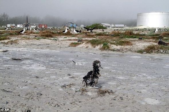 11日,日本发生里氏9级地震后,5英尺(1.52米)高的海浪席卷地势低洼的中途岛,洪水淹没这里大约4小时,导致至少1000只成年和处于青春期的黑背信天翁和数千只幼鸟死亡。夏威夷和太平洋岛国家野生生物保护区的项目主管巴里·斯特格利兹表示,很多是溺水而亡,或者被碎屑掩埋。