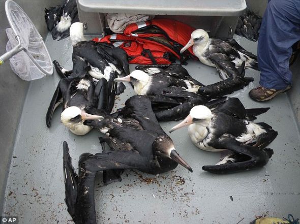 从中途岛国家野生生物保护区救出的70只信天翁中的一些