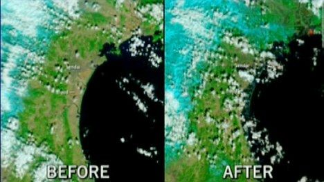 太空拍日本强震遭海啸洪灾前后对比图(图)