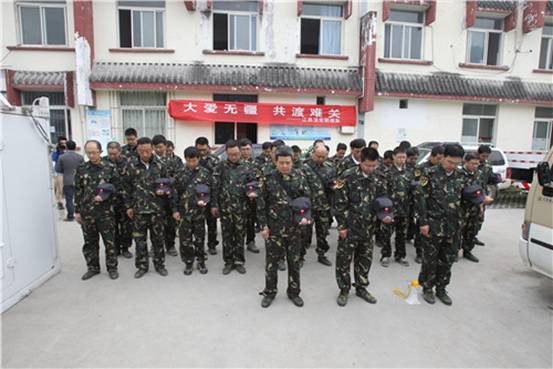 2013年4月27日,四川省“4·20”芦山7.0级强烈地震哀悼日。江苏省国家突发急性传染病防控队暨江苏卫生应急总队晨会后,全体队员怀着悲痛心情,沉痛哀悼遇难同胞,愿死者安息,生者坚强。
