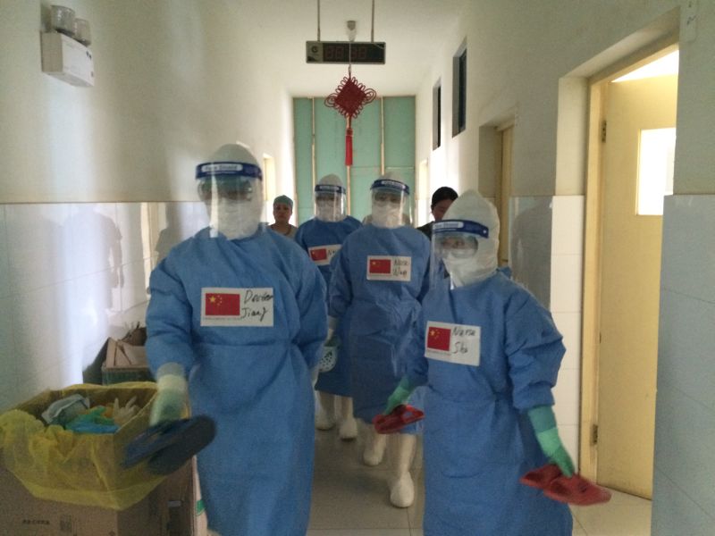中国(江苏)援塞抗疫医疗队队员在工作中