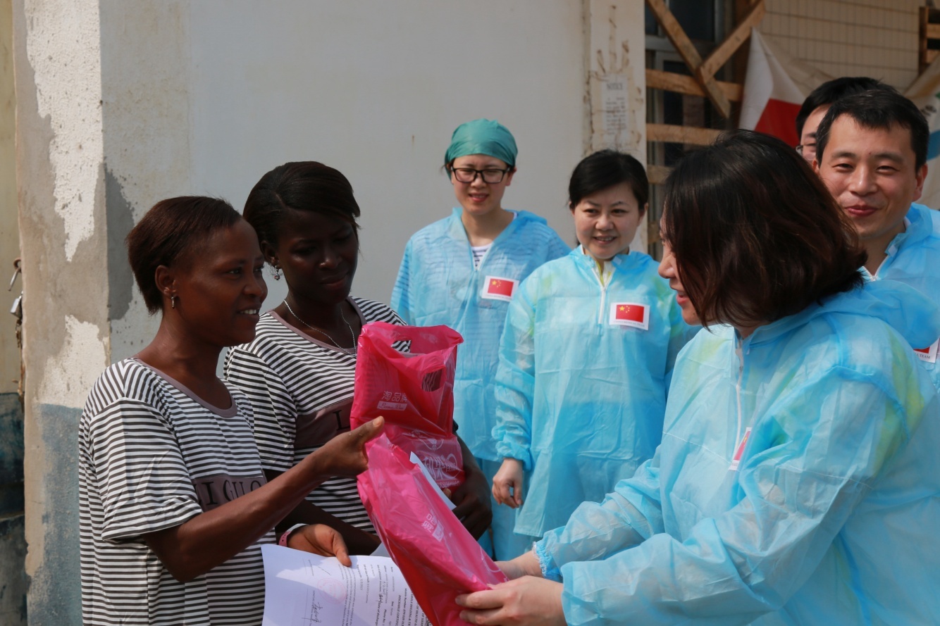 塞拉里昂属于热带地区,气温偏高,隔离病房中没有空调,且经常停水停电。医务人员每次去诊疗病人,都要穿上厚重的防护服,每次做完诊疗,都已是汗流浃背,感觉要虚脱,但是队员们考虑更多的是患者病情,虽然工作强度很大,却没有一个人叫苦叫累。随着治疗过程不断进展,两名患者的症状逐渐有所减轻,但是情绪却依然很低落。要知道埃博拉出血热的病死率高达50%~90%,很多病人在自己确诊之前,已有其他的亲人因该病致死,在病人心目中,埃博拉可能就意味着死亡。针对这种情况,队员们在治疗和护理的同时,也对她们进行了心理治疗,鼓励她们树立战胜病魔的信心。经过中塞双方医务人员20天的共同精心治疗,患者的症状完全消失,4月2日、3日连续两次复查埃博拉病毒核酸阴性,符合治愈出院的标准。首批两例病例的治愈出院,也极大地鼓舞了医疗队的信心,相信不久的将来,中国援塞抗疫医疗队必将与塞国人民一起见证抗击埃博拉战役的胜利。