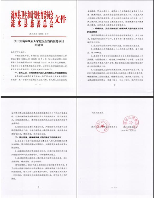 2018年1月19日,国家卫生计生委、民政部、残联和红十字会联合下发关于开展世界防治麻风病日活动的通知,要求全国卫生计生部门落实关爱政策,将麻风病人纳入家庭医生签约服务的重点对象,切实解决病人就医歧视,就医困难的问题。