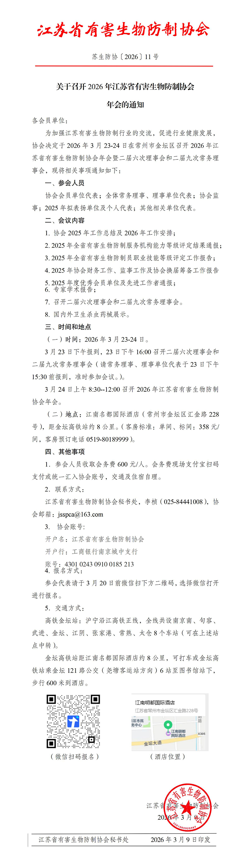 关于召开2026年江苏省有害生物防制协会年会的通知