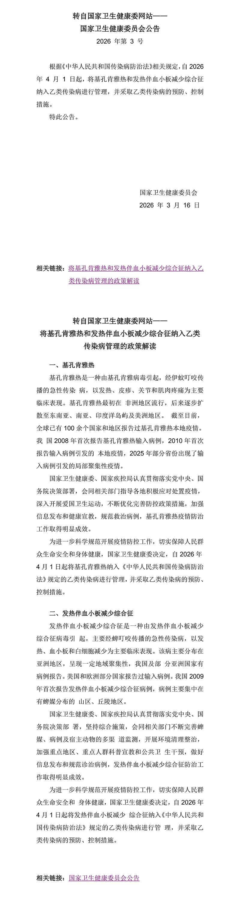 转自国家卫生健康委网站——国家卫生健康委员会公告