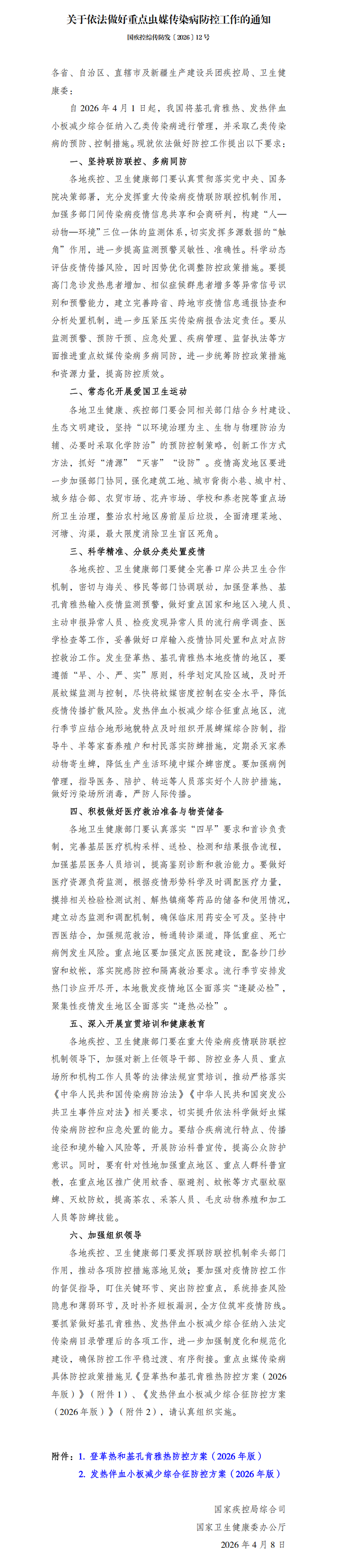 《关于依法做好重点虫媒传染病防控工作的通知》