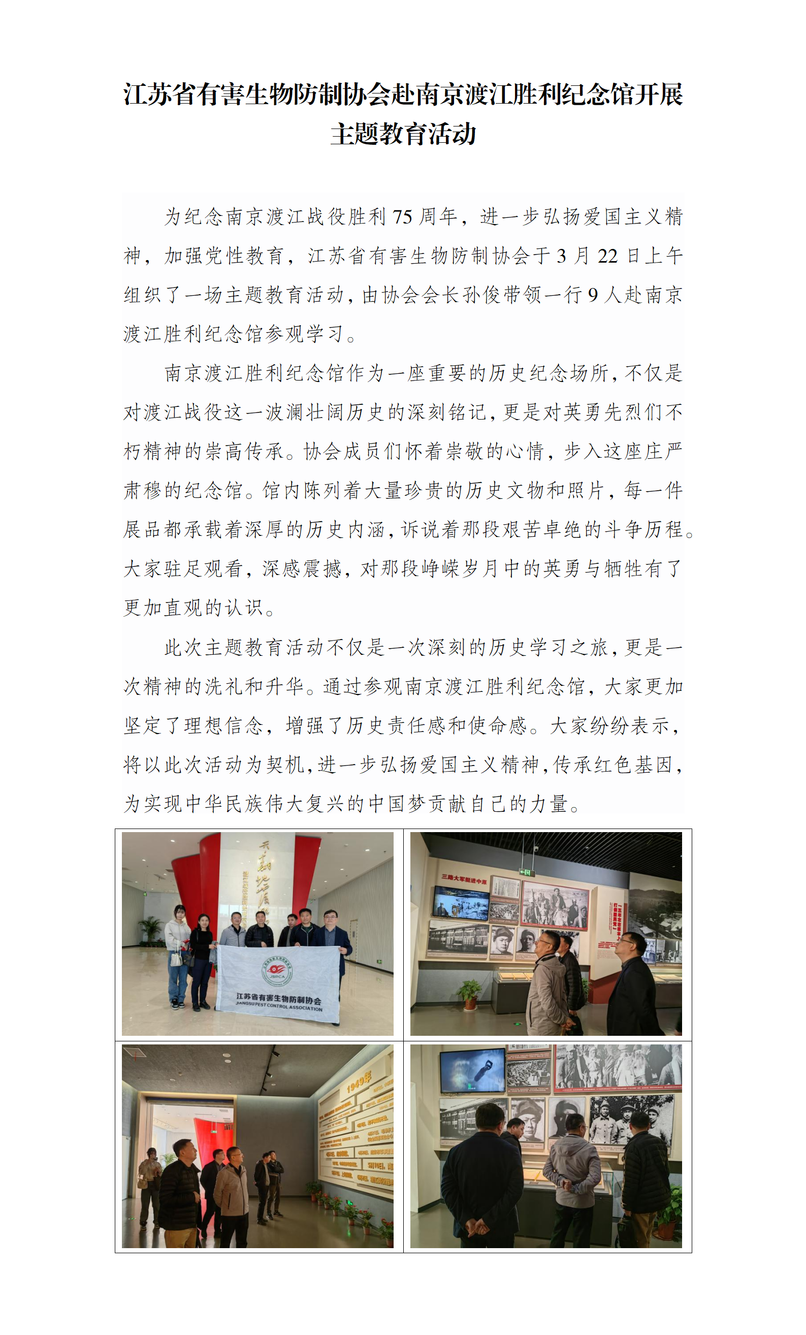 江苏省有害生物防制协会赴南京渡江胜利纪念馆开展主题教育活动