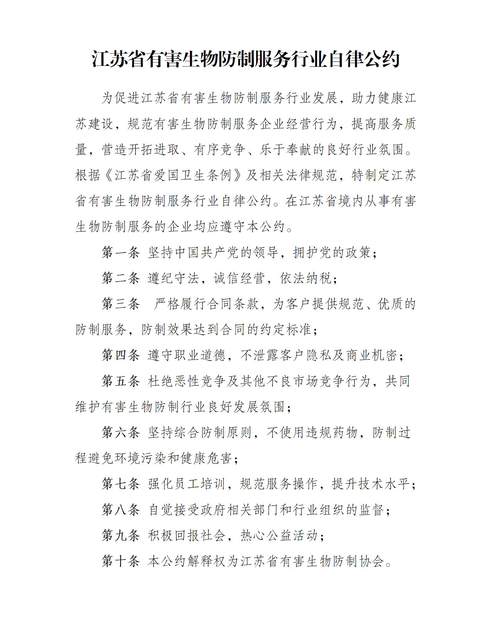 江苏省有害生物防制服务行业自律公约