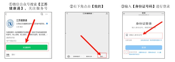 ·微信搜索并关注“江苏健康通”公众号。