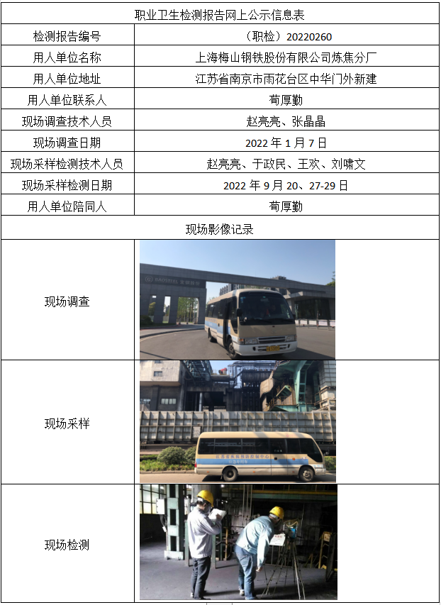 (职检)20220260-上海梅山钢铁股份有限公司炼焦分厂职业卫生检测报告网上公示信息表