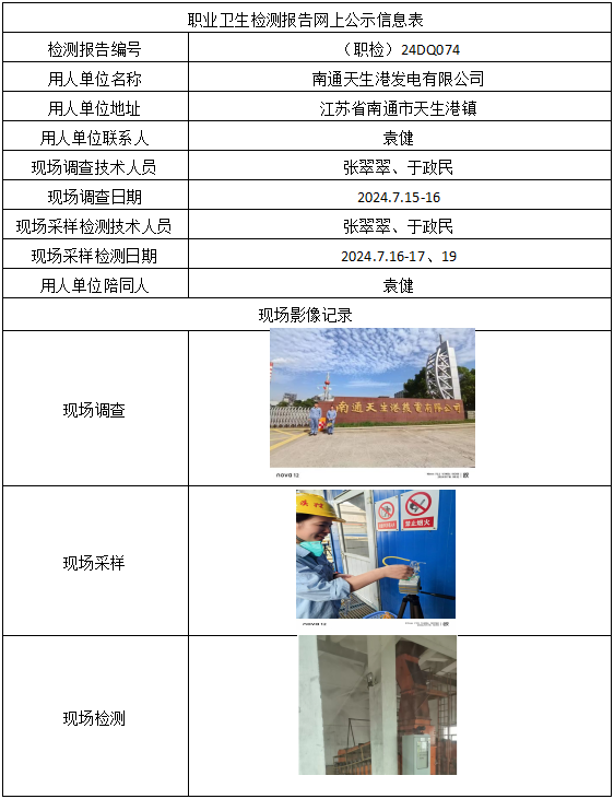 (职检)24DQ074-南通天生港发电有限公司职业卫生检测报告网上公示信息表