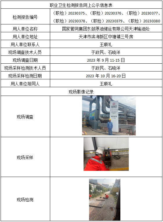 (职检)20230375-380-国家管网集团东部原油储运有限公司天津输油处职业卫生检测报告网上公示信息表