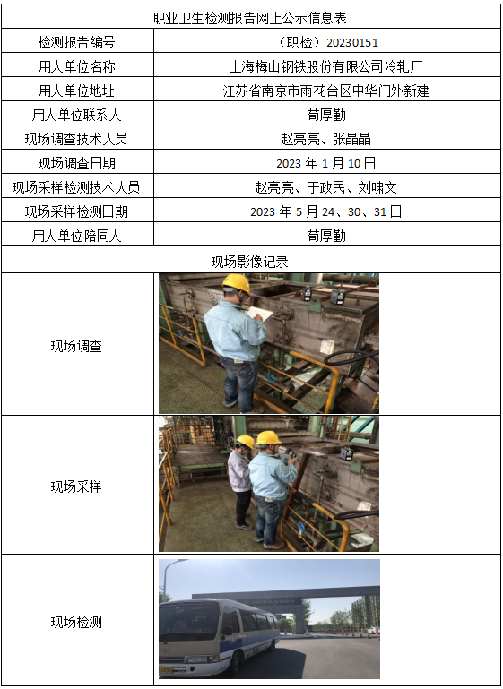 (职检)20230151-上海梅山钢铁股份有限公司冷轧厂职业卫生检测报告网上公示信息表