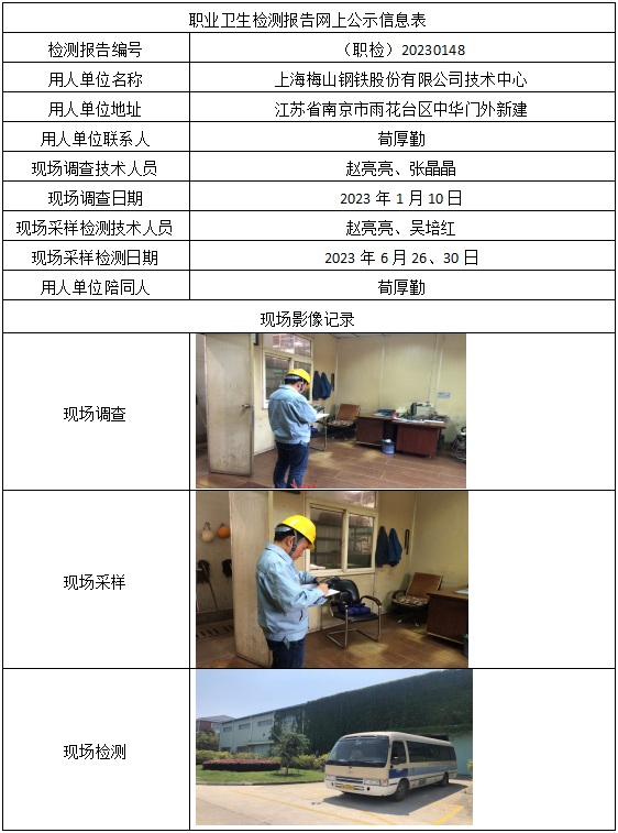 (职检)20230148-上海梅山钢铁股份有限公司技术中心职业卫生检测报告网上公示信息表
