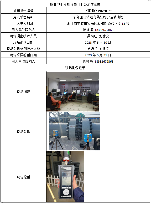 (职检)20230132-国家管网集团东部原油储运有限公司宁波输油处白沙湾输油站职业卫生检测报告网上公示信息表