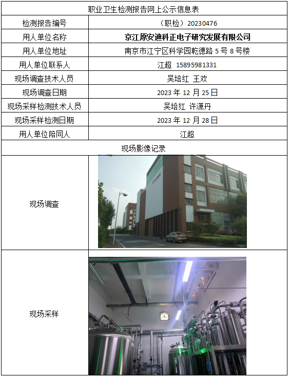 (职检)20230476-南京江原安迪科正电子研究发展有限公司职业卫生检测报告网上公示信息表