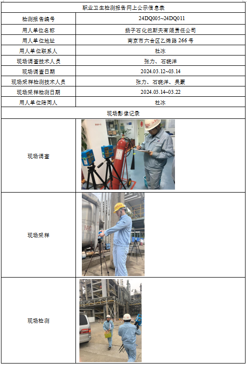24DQ005~24DQ011扬子石化巴斯夫有限责任公司职业卫生检测报告网上公示信息表