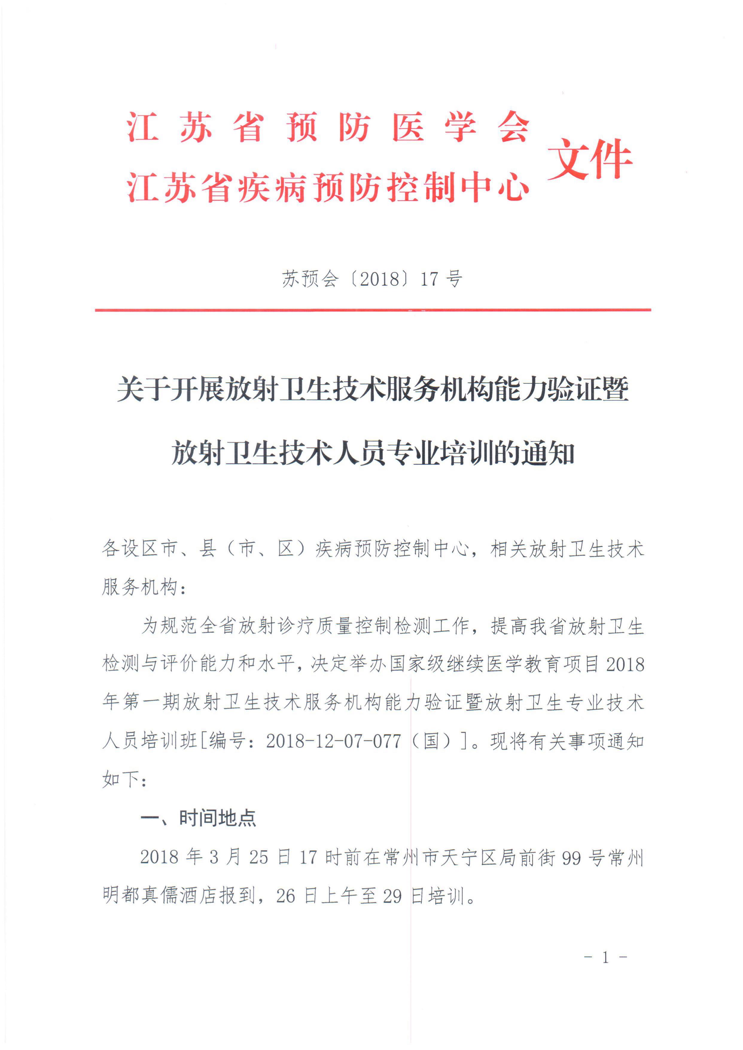 关于江苏省职业健康技术服务机构专业技术人员培训班报名的通知