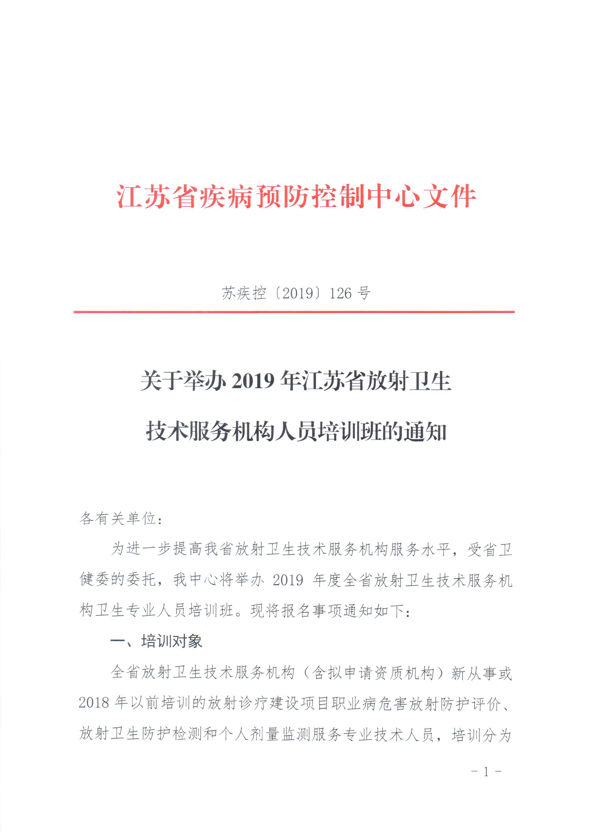 关于举办2019年江苏省放射卫生技术服务机构人员培训班的通知