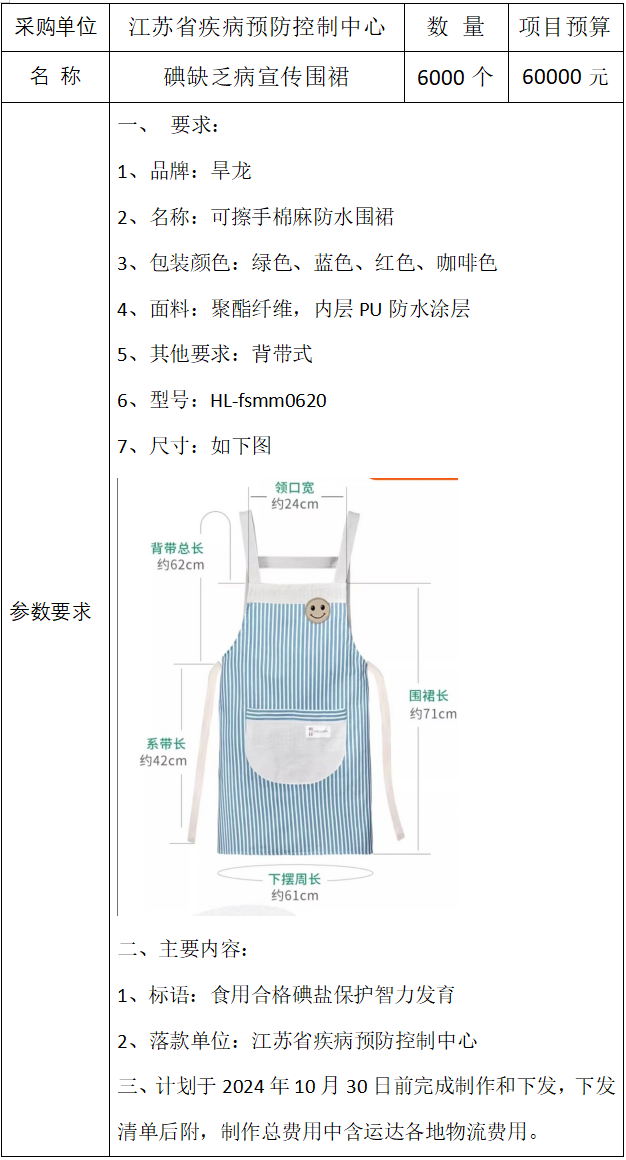 2024年采购下发碘缺乏病宣传围裙需求公告(第216批)