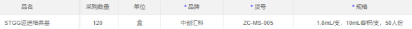 一、采购标的:STGG运送培养基 120盒