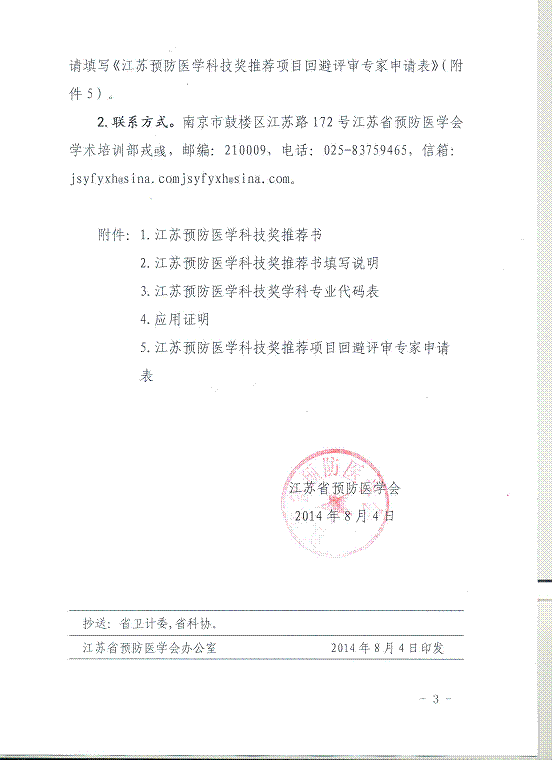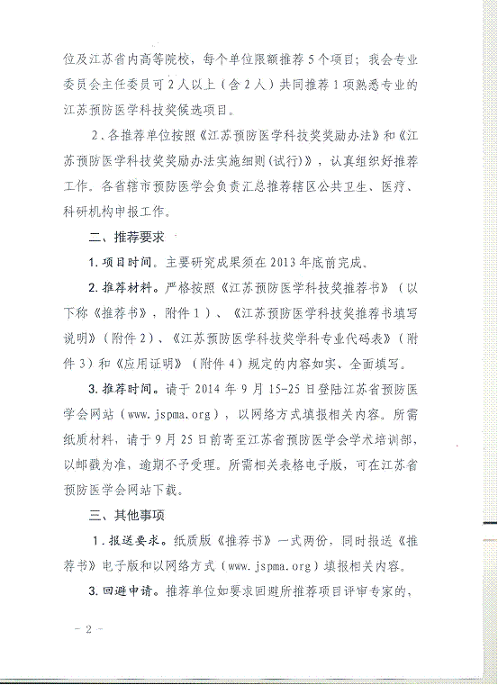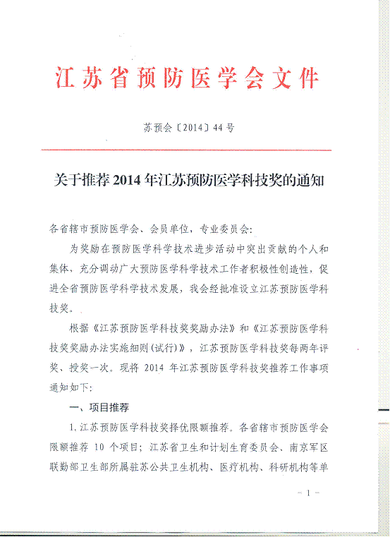 关于推荐2014年江苏预防医学科技奖的通知