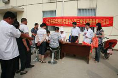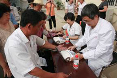 6月28日清晨,我们驱车来到泗洪县界集镇界集村,已有很多村民等候在那里,因为他们前来参加地方病氟中毒调查还需要做抽血和拍片的项目,所以我们立即行动起,拿出血压计和带来的慰问小礼品,阳光下同志们一边为村民测血压、测心率,一边耐心解答村民们提出的有关疾病问题,特别是村民们对自己的血压提出了很多相关疑问,党员同志们们用学习的医学知识作了细心的回答,针对“我的血压从来没有量过,现在这么高有没有关系”、“我要不要吃药”、“我天天吃药,不测血压行不行”、“我是不是吃药吃多了,血压才会那么低”等等问题,党员同志们耐心的一边解答,一边指导他们应该怎么做,并安慰他们不要着急,有的村民不相信自己的血压会那么高,考虑到有的村民是走了很远的路过来的,党员同志们让其在一旁先休息一下,静下心来等一下再测一遍血压更为准确,也是对他们的负责,不厌其烦,个个忙的汗流浃背,至到看到他们很满意的离开为此,并带走我们赠送的保健小礼品。