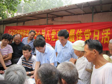 听说省里的专家过来义务体检,来的老百姓很多的。由于村里的年轻人很多都在外地打工,来体检的老百姓主要是一些年龄比较大的老大爷和老大娘,不少人甚至从来都没有量过血压。尽管人很多,场面也比较混乱,但是负责体检的几位老党员仍耐心细致地为老百姓服务,碰到血压比较高的人,八支部的党员同志还会耐心地为大伙讲解高血压病人在日常生活中应该注意的问题,同时针对老百姓提出的健康问题也都做了详细的解答。当地的老百姓对八支部这种尽心尽职的服务也很满意。