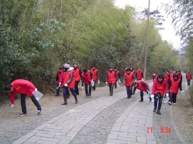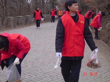 元月21日上午九点整,还好天公做美没有预报的雨夹雪天,我们已早早地在紫金山索道口集合,换上统一的红色“虎凤蝶行动”马甲,拿好垃圾钳、垃圾袋,顶着瑟瑟寒风目标三道弯开始行动。沿着弯弯曲曲山道,从紫金山索道口直至三道弯,无论是地面的烟蒂,还是灌木丛里的食品包装袋,或是水沟里的饮料罐,都被我们一一细心拣起。那条登山的路上,那群手持满满的垃圾袋、心中充满了绿色希望人里,有你,有我。登山、拣垃圾、保护虎凤蝶,虽然一次简单的事件,不但锻炼了个人体魄,加强了环保意识,也让我们看到不少登山游人的环保意识提高了,除了脚印什么都不留下。