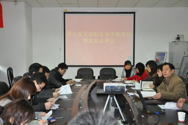 2011年3月4日,第六党支部召开了创先争优推进会暨党员点评会议,支部20位党员参加了会议。许卫国书记首先对支部前一阶段的创先争优活动作了小结,一是支部重视,学习先行,支部对创先争优活动高度重视,积极组织学习相关文件,在思想上保证全体党员态度端正,行动主动;二是围绕主题,抓好载体,支部紧紧围绕省厅和中心确定的活动主题,紧密结合医改工作,结合疾控工作实际,充分载体活动,在各种活动中开展创先争优,营造浓厚活动氛围;三是学习典型,树立典型,支部积极开展向全省疾控系统的先进典型沈谨同志学习活动,并培养和树立身边的先进典型,在中心双十佳评选活动中,我支部共有6位党员和职工被评为十佳党员或职工;四是立足岗位,争创一流,2011年慢非传所获得了全国卫生系统青年文明号命名,慢传所宋红焕、杨丹丹两位同志在卫生部组织的全国结核病实验室检测知识和操作技能比赛中获“全国结核病实验室技术标兵”荣誉称号,微检所通过省级机关青年文明号年度考核,在国内首次对新发现的“发热伴血小板减少综合症”病原开展全面的病原学检测工作,我支部还被评为2010年度卫生厅先进支部。