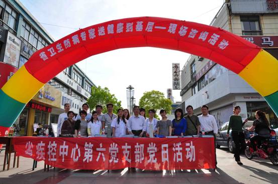 根据厅创先争优指导小组办公室2011年工作要点精神,第六党支部继续推进“三走进三服务”主题实践活动。2011年5月13号,支部组织开展了 “送健康到基层”为主要内容的党日活动。中心慢传所、慢非所、病原所的党员和群众积极分子在支部书记许卫国带领下,深入盐城大丰,为农民群众送上结核病和慢性病防治健康知识和咨询服务。