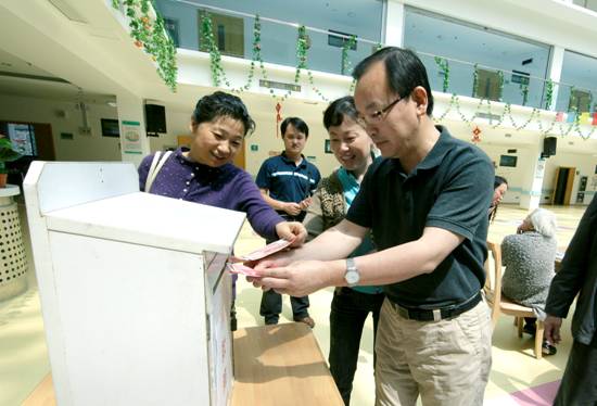 2011年5月27日,支部30多名党员群众围绕“创先争优”和“三走进三服务”主题实践活动要求,在中心党委书记、主任汪华和支部书记蒋辽远带领下,又一次来到主要服务智障、特困和“三无”老人社会弱势群体的祖堂山社会福利院,举行“创先争优活动联系点”揭牌仪式,探望慰问智障老人。