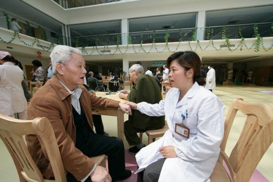 掩映在一片绿色中的祖堂山社会福利院特护楼大厅,窗明几净,老人医疗、娱乐、康复等综合功能设施齐全、功能配套,专业化的医护管理服务规范,老人们生活有序,神情安详。