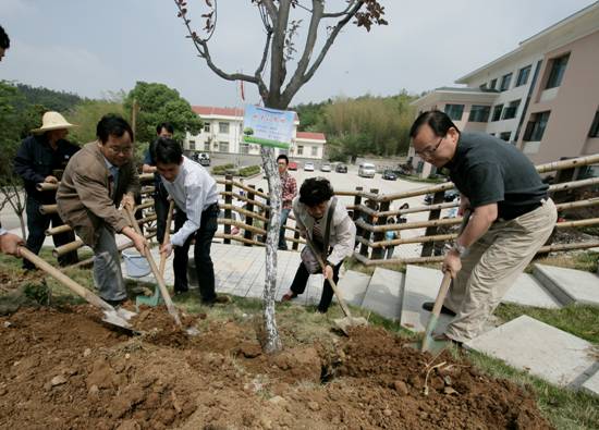 随后,福利院王院长和中心主任、党委书记汪华共同揭开了一支部“创先争优活动联系点”标牌。福利院杨书记陪同党员群众栽种、认养了2棵象征幸福、健康的紫薇树。