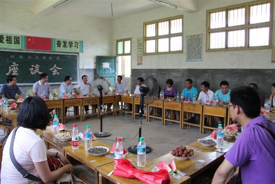 轻松友好的捐赠仪式后,支部与龙门乡土岩村小学师生召开了座谈会。支部书记王彩生动情地介绍了爱心之行的目的意义,强调支部把此次活动作为创先争优实践和提高党员党性修养,密切与群众联系的重要举措,提出了建立长期联系的建议措施。环境所张庆兰医师作为当年下乡知青,是横峰县龙门乡土岩村的老朋友,土岩乡是她奉献青春的地方,再次见到结下浓厚情谊的老乡们,激动喜悦之情溢于言表,她深情介绍了活动的详细准备和落实情况,畅谈了当年插队的情景和土岩乡的发展变化。土岩小学校长对党员群众的拳拳爱心表达了诚挚谢意,表示会将捐赠的图书和文体用品切实用好,努力为孩子们成长创造更好的环境和条件,激励更好地学习,长大后报答家乡、报答曾经关爱他们的同志和老师。