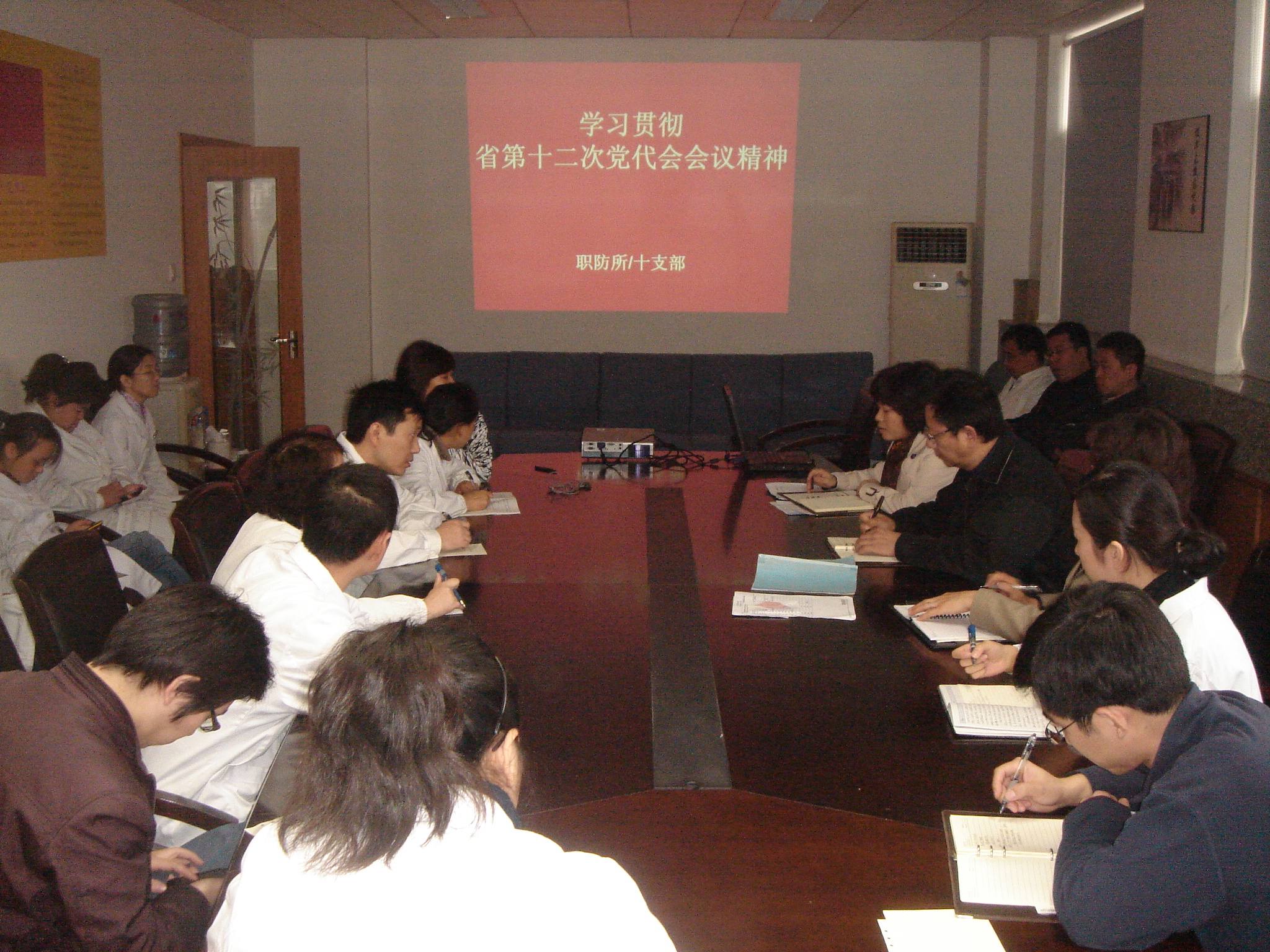 11月16日下午,按照中心党委要求,职防所/十支部组织全所党员和群众,认真学习了第十二次党代会会议精神。