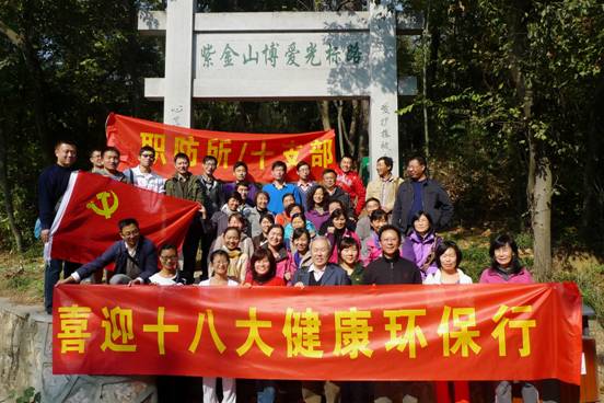 2012年11月7日,在中国共产党第十八次会议即将召开之际,为了丰富职工的文化生活,加强爱国主义教育,进一步弘扬主人翁精神,中心十支部/职防所组织党员及职工来到紫金山开展了主题为“喜迎十八大健康环保行”的党日活动。