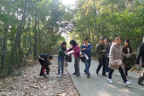 紫金山环山抱水、城林辉映,处在南京城的中间区域,扮演着城市“绿肺”的角色。每天都有大量的人群登上紫金山,离开后却留下了惊人的垃圾。党员、职工们从高楼林立的城市走进大自然,体验生态环境之美好的同时也感受到了保护环境是我们肩上的一份沉甸甸的责任。大家拿起塑料袋,将散落在景区沿途的饮料瓶、塑料纸、包装袋等垃圾装入随身携带的塑料袋中。用行动证明:除了我们的脚印,什么也不留下;除了我们的留影,什么也不带走!同时,为宣传职业病防治知识,倡导健康生活方式,职防所专门印制了宣传折页,沿途发给登山的市民,艳丽的色彩和生动的版面,带给路人一份惊喜和祝福。
