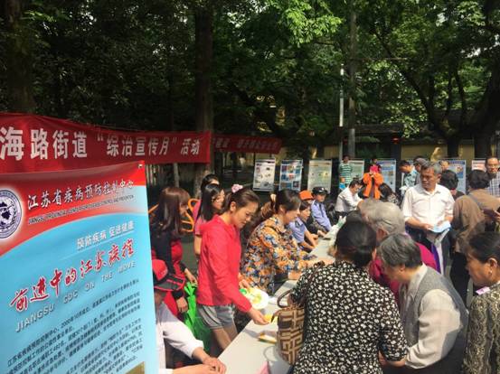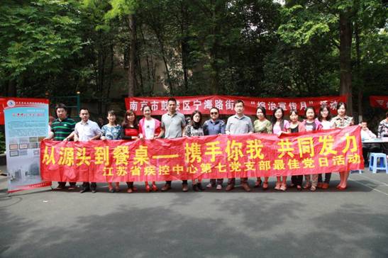 活动现场,第七党支部的党员技术骨干围绕食品安全、营养与膳食、健康生活方式等热点问题与老百姓们沟通交流、答疑解惑;团员青年向社区居民发放食品安全等相关知识科普宣传资料,大大提高了社区居民们的自我保健意识,起到了“综治平安月”的主题宣传效果。借助此次宣传活动平台,现场还展示了主题为“前进中的江苏疾控”宣传展板,通过向社区群众展示中心概况、主要职责、获得荣誉等内容,加深了社会大众对我中心工作的理解和支持。