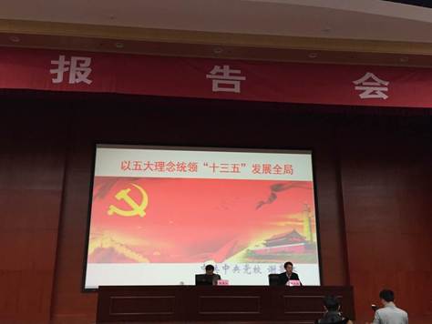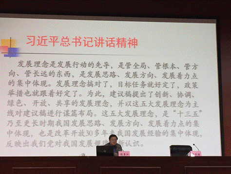 报告会分两部分内容:第一部分介绍我国新常态下的基本发展思路及其特点;第二部分讲解如何认识和贯彻五大理念。谢教授详细阐述了“五大理念”创新、协调、绿色、开放、共享的深层含义和重大意义:创新必须摆在国家发展全局的核心位置,不断推进理论创新、制度创新、科技创新、文化创新等各方面创新,让创新贯穿党和国家一切工作,让创新在全社会蔚然成风;协调主要从4个方面下手:区域协同、城乡一体、物质文明精神文明并重、经济建设国防建设融合,注重在协调发展中拓宽发展空间,在加强薄弱领域中增强发展后劲;绿色就必须坚持节约资源和保护环境的基本国策,坚持可持续发展,坚定走生产发展、生活富裕、生态良好的文明发展道路,加快建设资源节约型、环境友好型社会,形成人与自然和谐发展现代化建设新格局;开放必须顺应中国经济深度融入世界经济的趋势,奉行互利共赢的开放战略,坚持内外需协调、进出口平衡、引进来和走出去并重、引资和引技引智并举,发展更高层次的开放型经济;共享就是按照人人参与、人人尽力、人人享有的要求,坚守底线、突出重点、完善制度、引导预期,注重机会公平,保障基本民生,实现全体人民共同迈入全面小康社会。谢教授还特别指出:五大发展理念,是“十三五”乃至更长时期我国发展思路、发展方向、发展着力点的集中体现,也是改革开放30多年来我国发展经验的集中体现,反应出我们党对我国发展规律的新认识,必将成为引领“十三五”时期我国发展全局、更加有效应对各种风险和挑战、不断开拓我国发展新境界的重要思想保证。