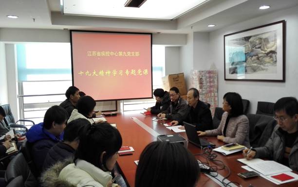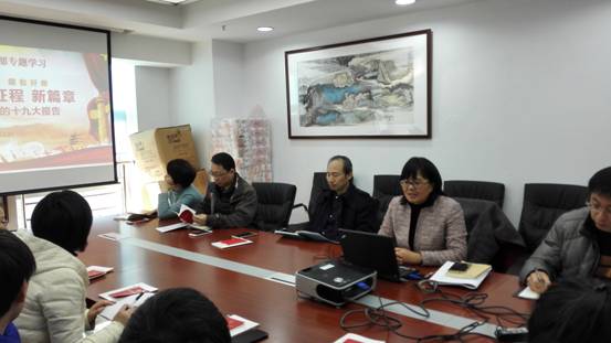 2017年12月21日下午,中心第九党支部于在C楼会议室召开党的十九大精神专题学习大会,中心副主任、党委副书记徐燕出席会议,并以党课的形式向全体党员解读十九大报告,支部书记陈晓东主持会议。