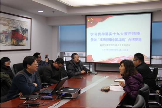 根据中心党委《关于召开2017年度党支部组织生活会和开展民主评议党员的通知》要求,二支部紧扣主题,围绕健康江苏建设大局,结合支部所属部门业务实际、党员各自工作特点,积极开展民主评议。二支部高度重视本次专题组织生活会,提前通知每位党员,做好会前各项准备工作。于1月上旬通知每位党员同志,再次认真自学、全面理解党的十九大报告精神和十九大党章,准确把握科学内涵,特别是“实施健康中国战略”总主题,结合自己的思想实际和工作实际进行深入思考,认真反思和检查,为民主评议党员做好准备。会议首先由支部书记潘毅同志向与会党员汇报二支部2018年度支部工作成绩、存在问题及支委成员履职情况,明确开展民主评议党员活动的重要性。随后,潘毅同志讲述《学习贯彻落实十九大报告精神,争做“实施健康中国战略”合格党员》的党课。他通过“实施健康中国的战略意义、准确把握实施健康中国战略的核心要义和基本思路、实施健康中国战略的重点任务”几个重点向党员同志详细解读。并率先垂范,对照“健康中国战略”带头开展了自我剖析,从自己在学习工作生活过程中的认识、到查找自身的不足。他对照“关键词”,结合编辑部的工作情况,就如何“为实施健康中国战略尽一份力”做了详细规划。