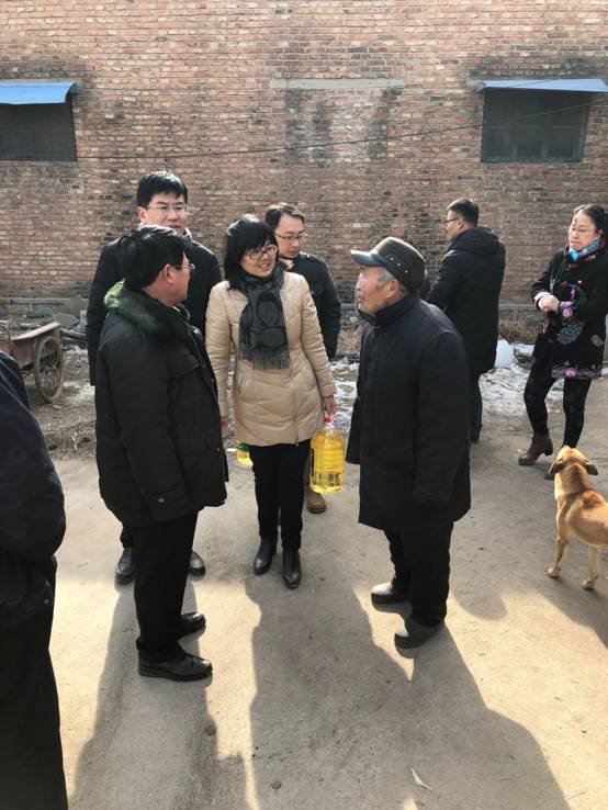 会后史公福副主任和刘博镇长陪同调研。雪后初晴,徐燕副主任一行首先看望了顺河镇大圣村4户困难群众,向困难群众送去生活物资。在单冬委家中,徐燕副主任向其家人关切地询问老人身体状况,嘱咐做好老人的照顾工作,并代表中心职工向他捐赠了米和油等生活必需品。