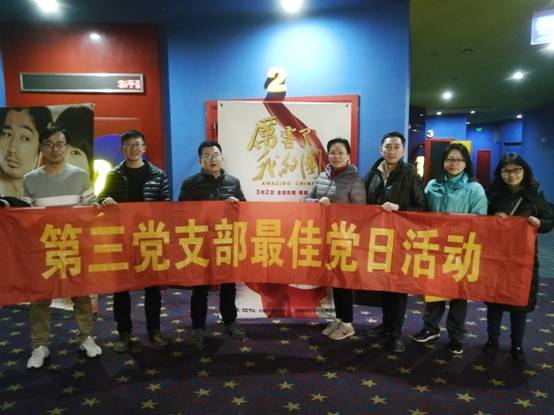 2018年3月9日,在三支部的组织下,支部职工观看了电影《厉害了,我的国!》,本片是由中央电视台和中国电影股份有限公司联合出品,以纪录片的形式讲述了党的十八大以来中国的发展和成就,以及十九大报告中习近平总书记提出的中国特色社会主义进入新时代这一重大论述。看完之后,大家都对国家的快速发展和取得成果感触颇深。