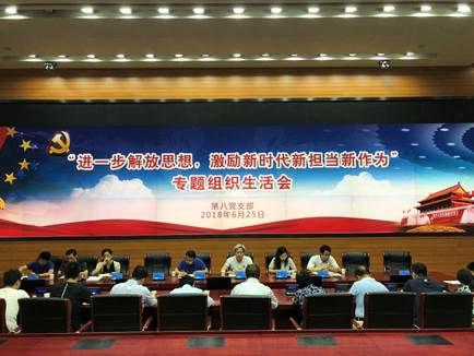 2018625日下午,中心党委书记兼副主任朱宝立与第八党支部全体党员一起,出席参加“进一步解放思想、激励新时代新担当新作为”专题组织生活会。党支部副书记杨丹丹主持。