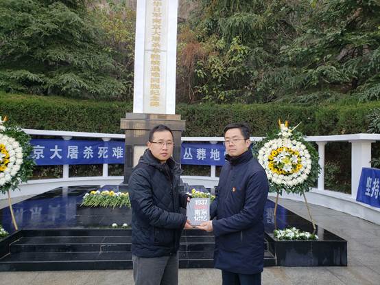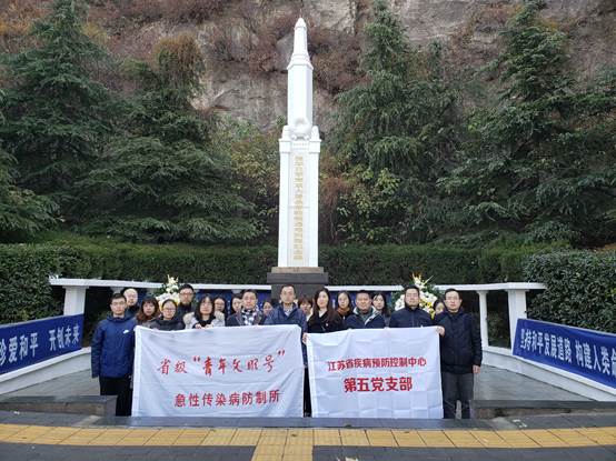 20191213日上午,第五党支部职工参与此次南京大屠杀死难者国家公祭日活动,部分职工前往侵华日军南京大屠杀草鞋峡遇难同胞纪念碑举行悼念仪式。十点前,在草鞋峡现场参加纪念活动的员工与来自社会各方的群众一起,整齐列队,在庄严肃穆的氛围中齐唱国歌;十点零一分,警报响彻长空,全体人员低头默哀,缅怀在南京大屠杀中死难的同胞,随后依次向死难同胞献上洁白的菊花。支部其他职工在中心观看南京大屠杀纪录片,诵读草鞋峡纪念碑碑文,铭记苦难历史;在警报声中集体默哀,悼念遇难同胞。五支部向参与现场纪念活动的职工赠送公祭日读物《1937南京回忆》,激励大家用行动牢记曾经的苦难,并为中华复兴而不懈努力。江苏省现场流行病学培训项目的十名学员,同时参与了草鞋峡遇难同胞现场纪念活动。