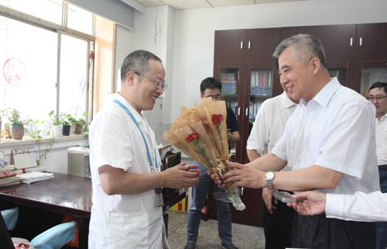 8月18日上午,省医师协会会长郭兴华、副会长兼秘书长刘彦群一行来我中心看望慰问公共卫生医师。郭会长到现场后向参加的公卫医师代表送上鲜花和贺卡,表达慰问之意,并向他们致以节日的问候。省疾控中心党委书记朱宝立、主任武鸣、副主任陆伟、纪委书记周永林,以及有关部门负责人陪同慰问。