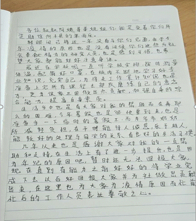 单雨乐同学的感谢信