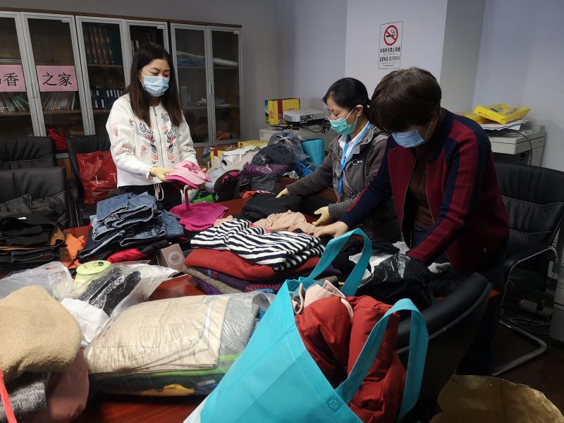 自倡议发出后,中心职工踊跃参与,纷纷将家里闲置的衣物、书籍、被褥等物品打包送到集结点,共22大箱。考虑到卫生问题,大家在将物品打包前,都予以清洗晾晒,有条件的还进行了消毒处理。在收到捐赠物品后,第三支部、省健康教育协会支部党员同志分工明确,对捐赠物进行分类整理和进一步打包。成员们认真细致,将衣物按厚实程度、适宜人群的不同归好类,方便衣物在到达受捐地后的进一步分发。当然,在整理过程中,成员们始终严格践行卫生安全规范,全程佩戴口罩和手套,保证我们捐赠物品的干净整洁卫生。感受着指尖衣物的温暖,想象着山里朋友穿上它们时的笑脸,大家的心里都暖暖的。